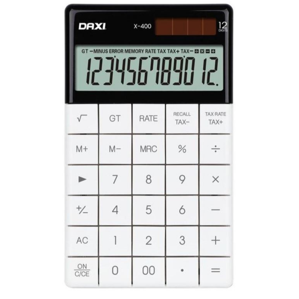 Daxi X-400 12 Haneli Hesap Makinesi, geniş 12 haneli ekranı sayesinde büyük ve karmaşık hesaplamaları rahatça görüntülemenizi sağlar. Güçlü işlemcisi, hesaplamalarınızı hızlı ve doğru bir şekilde yapmanıza olanak tanır. Ergonomik tasarımı, uzun süreli kullanımda dahi rahatlık ve pratiklik sunar.