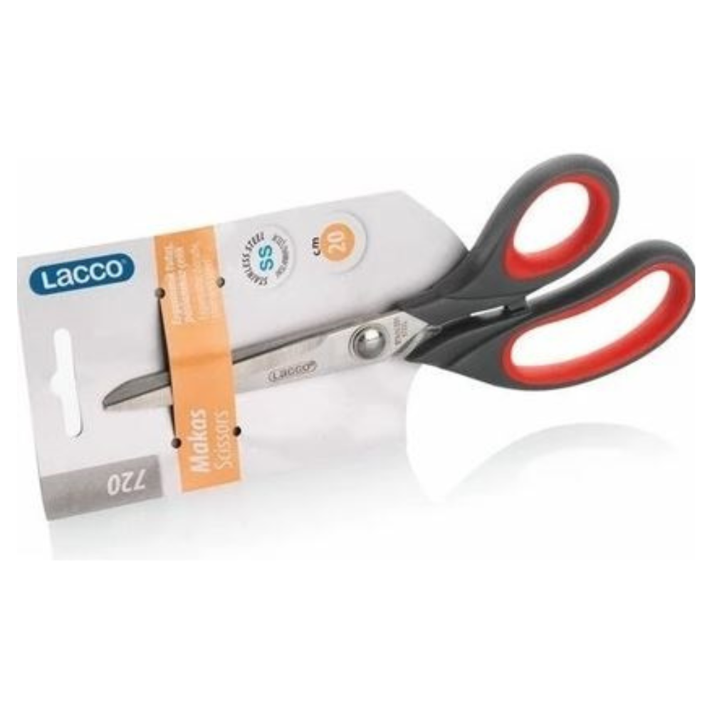 Lacco 720 20cm Paslanmaz Çelik Makas, geniş bıçak yapısı ve sağlam tasarımıyla her türlü kesim ihtiyacına uygun olarak üretilmiştir. Paslanmaz çelik bıçakları sayesinde kağıt, karton, kumaş ve daha birçok malzemeyi kolayca kesmenizi sağlar. Uzun süre keskinliğini koruyarak güvenilir bir kullanım sunar.