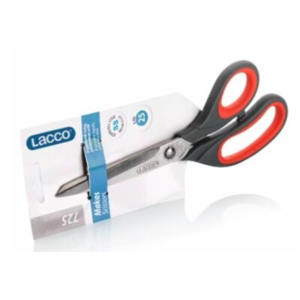 Lacco 725 25cm Paslanmaz Çelik Makas, geniş ve keskin bıçakları sayesinde profesyonel ve günlük kullanımlarda yüksek performans sunar. Paslanmaz çelikten üretilen bıçakları, kağıt, karton, kumaş ve plastik gibi farklı malzemeleri pürüzsüz ve kolay bir şekilde kesebilmenize yardımcı olur. Uzun süre keskinliğini koruyan yapısı sayesinde dayanıklı ve güvenilir bir kullanım sağlar.
